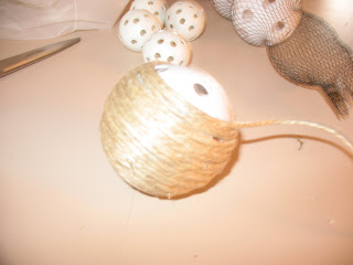 So from my moss-balls project, I had several of my Dollar Tree whiffle balls left over. I've seen these twine balls all over blog-land, and being the classic lemming that I am, I had to have some of my own =) The twine was a bit pricey for an el-cheapo like myself, but I've got a lot of that leftover now too.